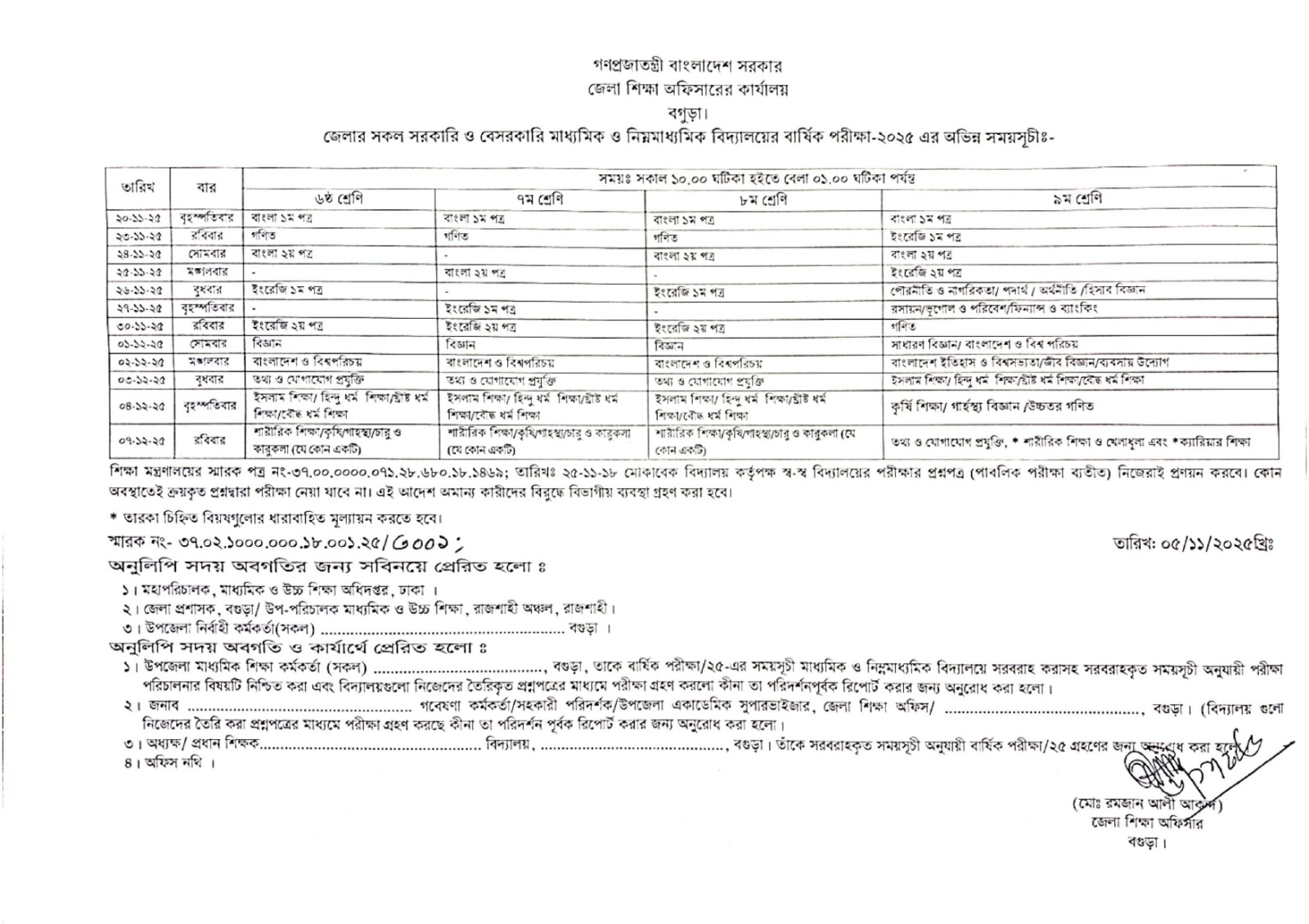 • ৬ষ্ঠ-নবম শ্রেণীর বার্ষিক পরীক্ষা বিজ্ঞপ্তি - ২০২৫